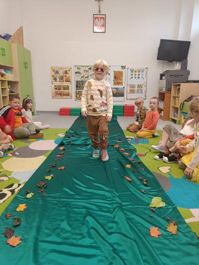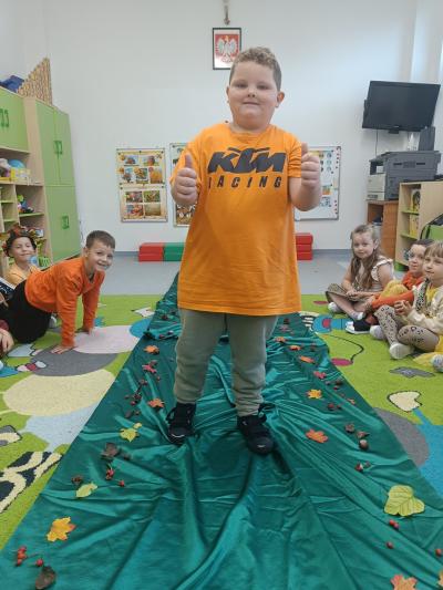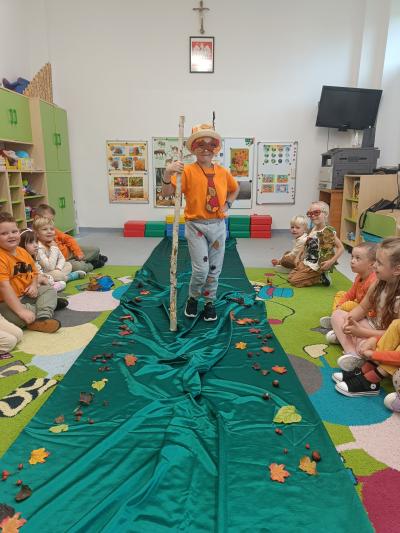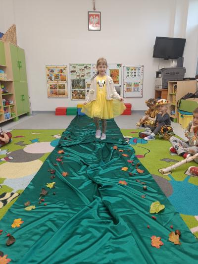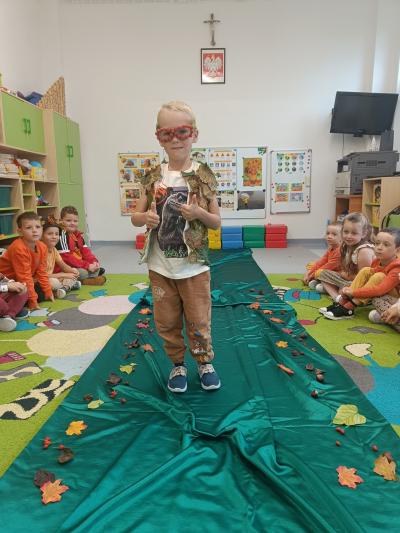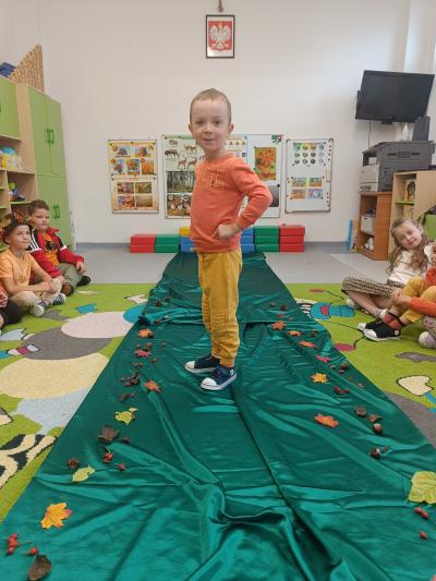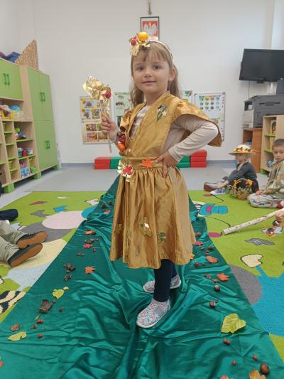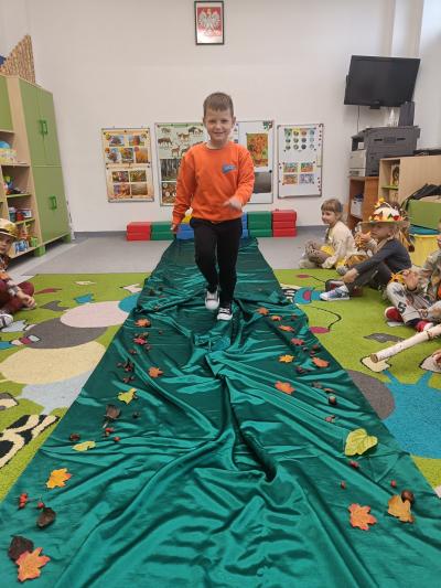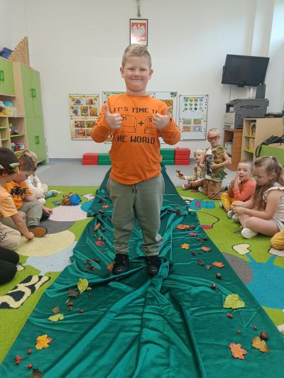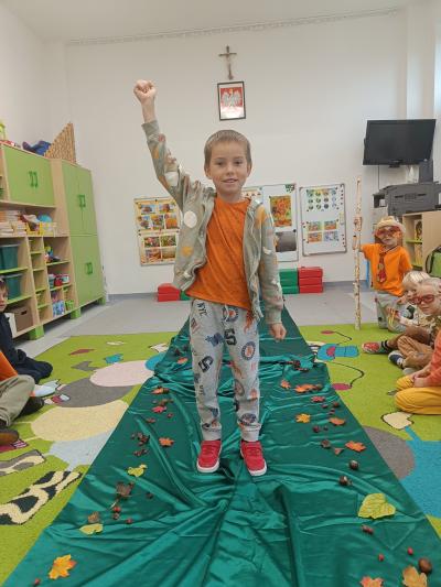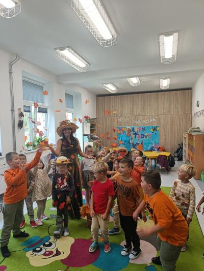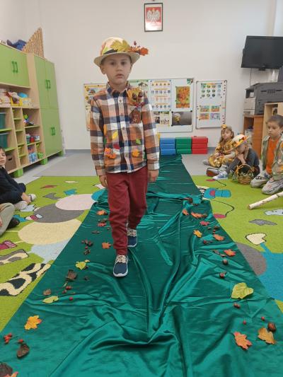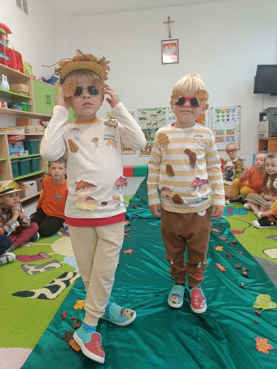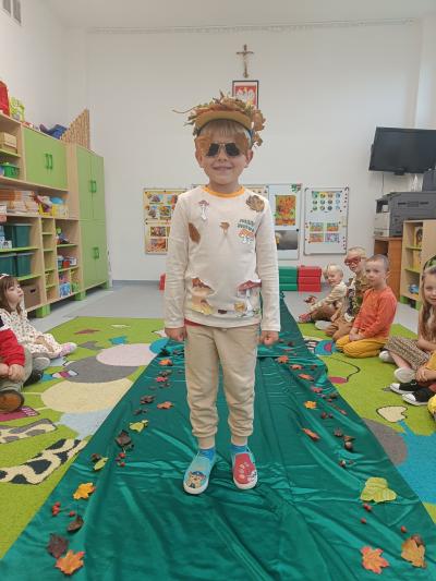 Dzisiaj również odbyło się kolejne ważne wydarzenie – jesienny pokaz mody. Przedszkolaki miały okazję zaprezentować swoje niepowtarzalne, kolorowe kreacje. Na wybiegu nie brakowało pomysłowości, uśmiechu i radości. Niespodzianką była wizyta Pani Jesień, która przygotowała dla dzieci zagadki związane z tą piękną porą roku. Wspólne przeżycia jeszcze bardziej zbliżają dzieci, ucząc je otwartości, odwagi i budowania relacji w grupie.