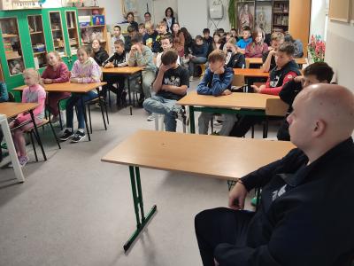W ramach "Tygodnia Budowania Relacji" do naszej szkoły zostali zaproszeni Panowie policjanci, którzy przekazali uczniom cenną wiedzę o tym, czym jest przemoc rowieśnicza i jakie może przybierać formy. Czasem wbrew pozorom niewinne i nieświadome zachowania mogą mocno zranić drugiego człowieka, dlatego zwracajmy naszą uwagę na to, w jaki sposób odnosimy się do naszych kolegów i koleżanek.