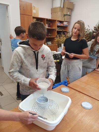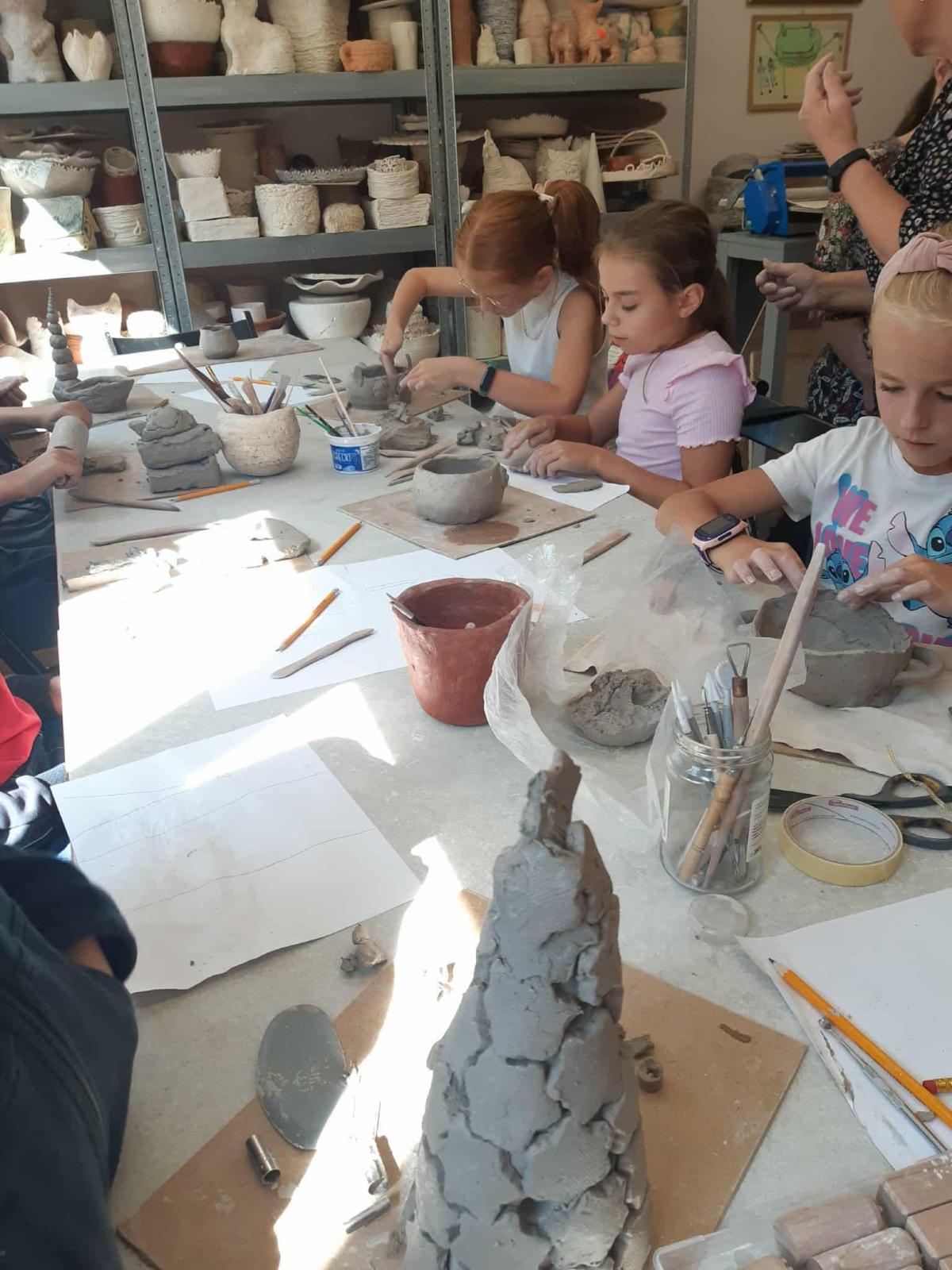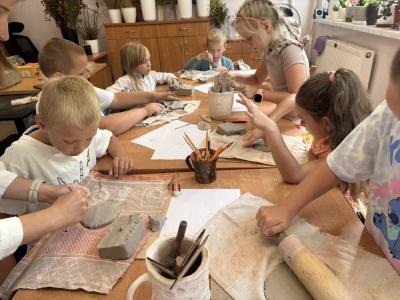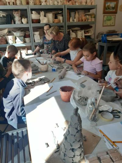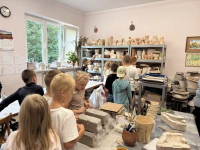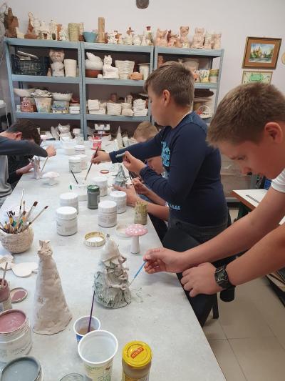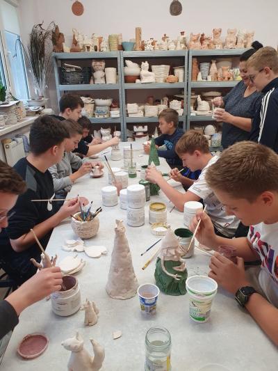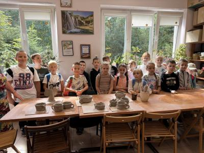 We wrześniu uczniowie klas drugiej, trzeciej i siódmej uczestniczyli w warsztatach ceramicznych, które odbyły się w REMEDIUM w Tymbarku. Zajęcia miały na celu zapoznanie uczestników z podstawami tworzenia ceramiki. Spotkanie rozpoczęło się od zwiedzania pracowni znajdujących się w stowarzyszeniu, następnie uczniowie przystąpili do twórczej pracy. Każdy uczestnik dostał swoją porcję gliny oraz narzędzia potrzebne do pracy.