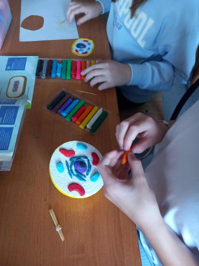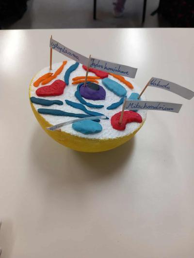 Uczniowie klasy 5 realizując na zajęciach biologii temat „Komórkowa budowa organizmów” wykazali się niezwykłą pomysłowością wykonując modele wybranej komórki. Do ich budowy młodzi biolodzy wykorzystali różnorodne materiały: plastelinę, wykałaczki, kreatywne druciki, gąbkę, tekturowe talerzyki itp. W ten sposób uczniowie podsumowali zdobyte na lekcji wiadomości dotyczące budowy komórki roślinnej, zwierzęcej, bakteryjne i grzybowej, struktur tworzących komórkę – ich wyglądu, funkcji i rozmieszczenia w komórce.