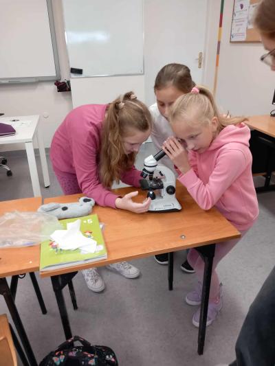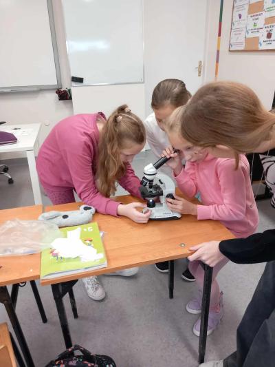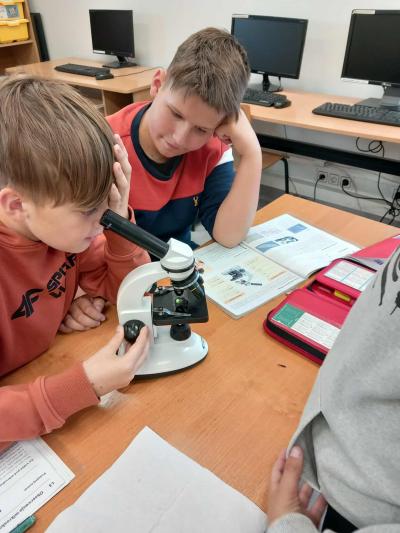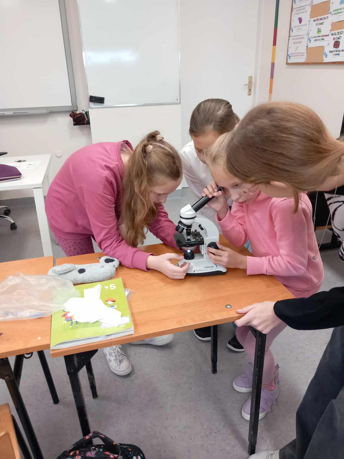 Kolejna lekcja biologii za nami :-)  Tym razem podczas zajęć uczniowie rozwijali swoje umiejętności obserwacyjne i przyrodnicze, poznając tajniki mikroskopowania oraz zdobywając nowe doświadczenia w obsłudze mikroskopu. W ramach ćwiczeń praktycznych – Co można zobaczyć pod mikroskopem? – młodzi badacze poszerzali swoją wiedzę oglądając preparaty mikroskopowe wykonane własnoręcznie (komórki skórki cebuli i pomidora, komórki liścia paprotki). Uczniowie mieli również okazję obejrzeć gotowe preparaty np. odnóże kroczne muchy, komórki wątroby oraz inne obiekty.
