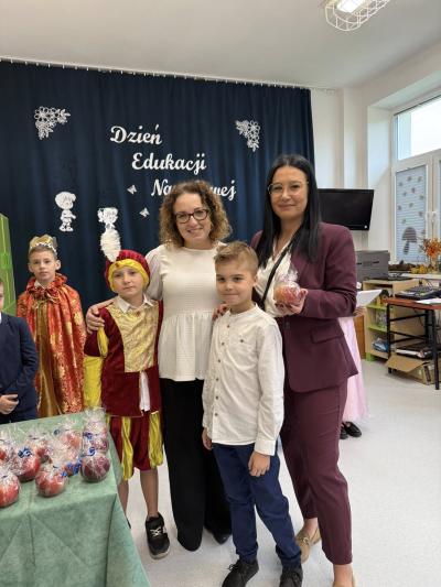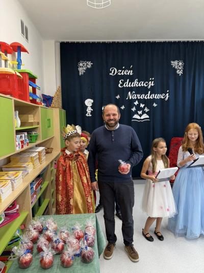 Z okazji Dnia Nauczyciela klasa trzecia przygotowała wyjątkową akademię – było trochę refleksji, trochę wzruszeń i dużo śmiechu! Uczniowie przytoczyli fragment Małego Księcia o autorytecie, pokazując, jak ważni są nauczyciele w naszym życiu. Punktem kulminacyjnym było wręczenie… „jabłkowych Oskarów” nagradzając nauczycieli oraz pracowników szkoły za ich cierpliwość, pasję, supermoce i codzienny uśmiech.