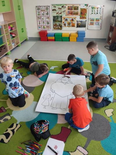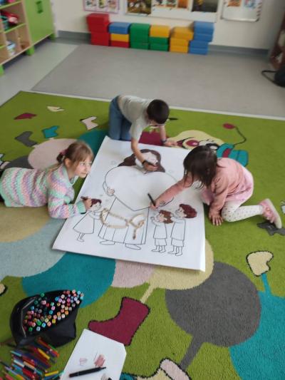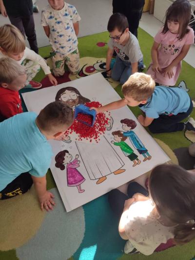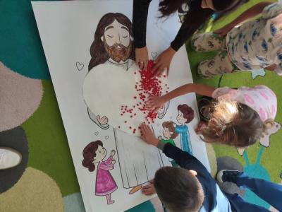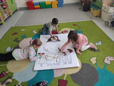 Oddział Przedszkolny podczas przygotowań do III Diecezjalnego Konkursu dla Przedszkolaków "Jezus moim Najlepszym Przyjacielem"